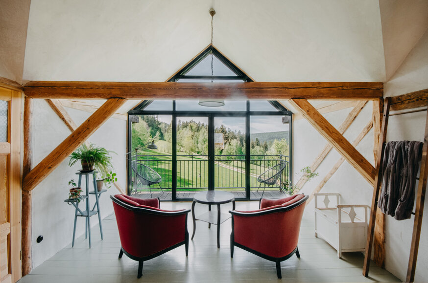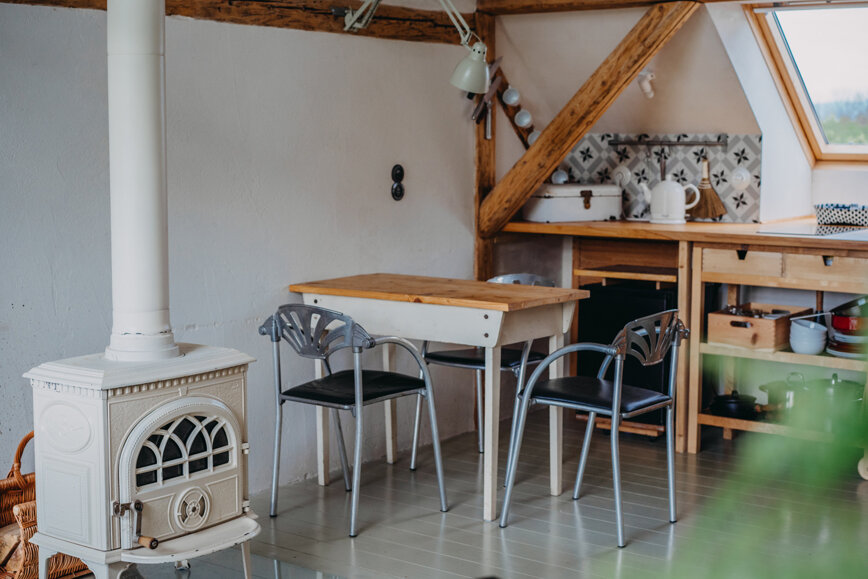 Dziupla to nasz najmniejszy apartament z obłędnym widokiem na dzikość Gór Bystrzyckich. Kiedyś poddasze stodoły, a dzisiaj przytulne gniazdko. Nie mylcie jednak przytulności z brakiem miejsca, bo na 35 m kw. stworzyliśmy salon, aneks kuchenny, łazienkę z prysznicem, zamykaną sypialnię z podwójnym łóżkiem oraz antresolę z dwoma pojedynczymi materacami.
